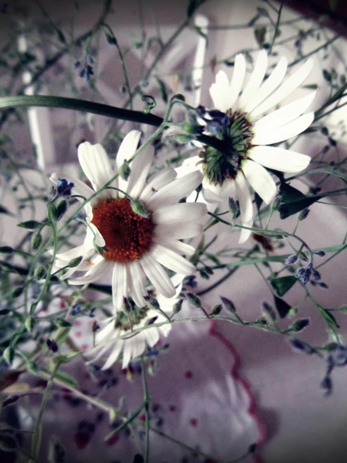 Ja täytyihän tähän kukka täyteiseen postaukseen saada lisäksi kuva noista keittiönpöydällä olevista römpsy kukista, hahah...